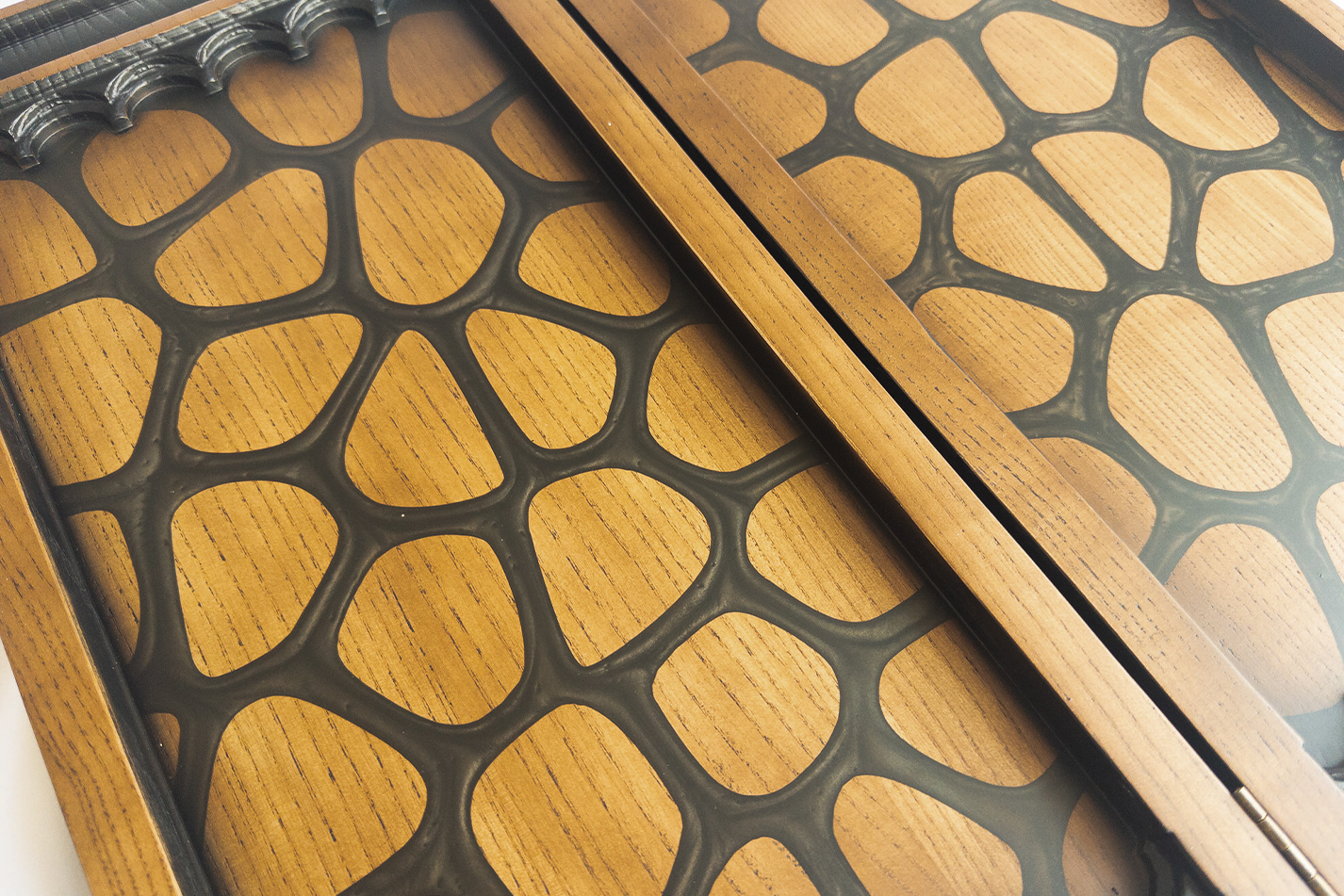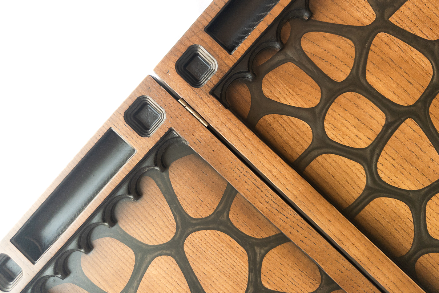 Diese mit grauem Epoxidharz verzierten Spielbretter aus Eschenholz überraschen durch ihr raffiniertes Design, das an die Struktur einer Bienenwabe erinnert. Die detaillierte Gravur und der elegante Kontrast zwischen Holz und Harz verleihen jedem Spiel einen zusätzlichen Hauch von Raffinesse und Stil. Diese Brettspiele eignen sich perfekt für alle, die Handwerkskunst und modernes Design schätzen und sind ein ideales Geschenk für jeden besonderen Anlass.