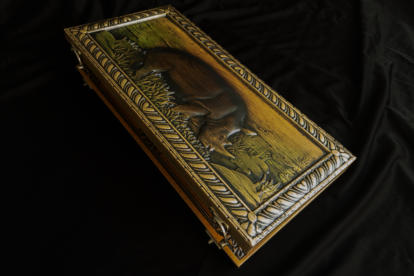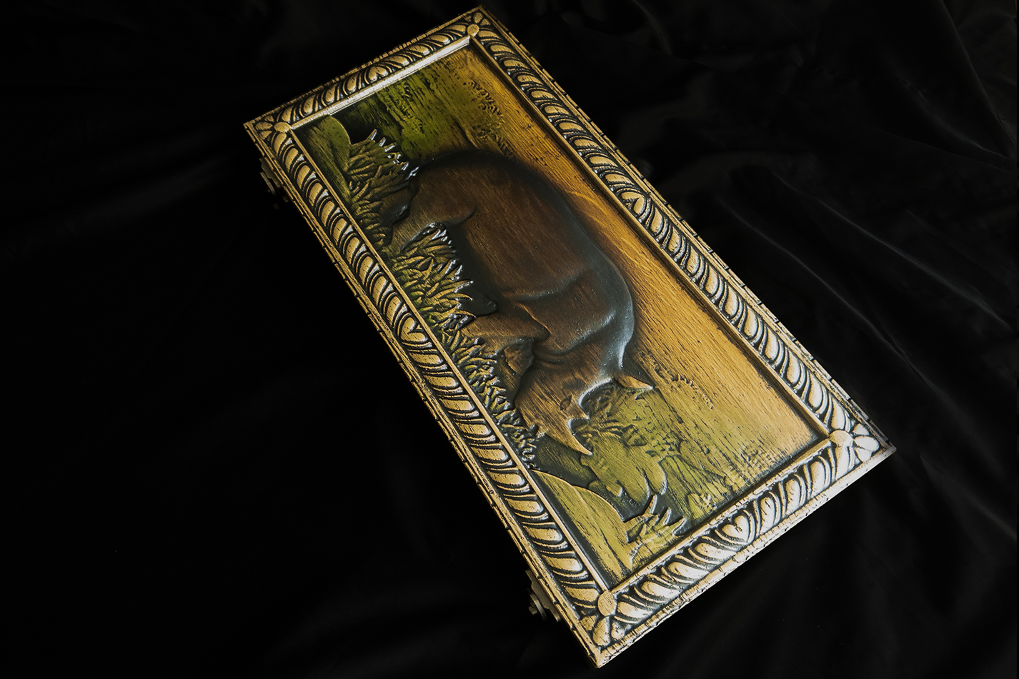 Diese Spielbretter aus Eschenholz sind ein außergewöhnliches Sammlerstück und zeigen ein Nashorn in seinem natürlichen Lebensraum, geschnitzt mit beeindruckenden Details. Fesselndes Design und sorgfältige Ausführung machen diesen Spieltisch zu einem Symbol für Stärke und Ausdauer. Dieser Tisch ist ideal für Naturliebhaber und Brettspiel-Enthusiasten. Er kombiniert natürliche Ästhetik mit Funktionalität und verleiht jedem Raum einen zusätzlichen Hauch von Eleganz.