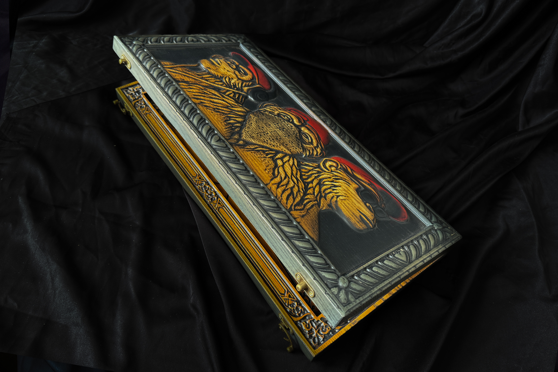 Élégance et sophistication dans backgammon en bois massif fabriqué à la main. Chaque pièce est soigneusement sculptée et finie pour créer une décoration spéciale pour n'importe quel espace. Avec des lignes fluides et des détails méticuleusement travaillés, cet backgammon devient une pièce maîtresse dans n'importe quelle pièce, ajoutant une touche de sophistication et de style. C'est plus qu'un simple jeu : c'est une œuvre d'art fonctionnelle qui allie de manière remarquable tradition et élégance.